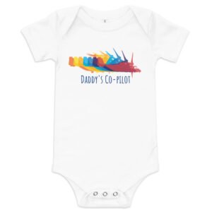 Prepare for takeoff with the adorable “Daddy’s Co-Pilot” baby onesie, the perfect attire for your little future aviator. Inspired by the iconic V-22 Osprey, this onesie is designed to keep your baby comfortable while adding a touch of fun and aviation spirit to their wardrobe.